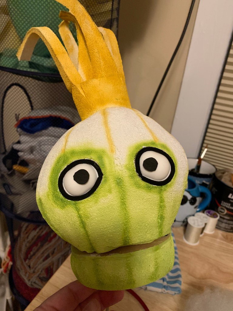 A friend brought me a mostly finished, blue haired, featureless puppet for some sprucing up. So I gave him a makeover (and an orange Hawaiian shirt), and voila!