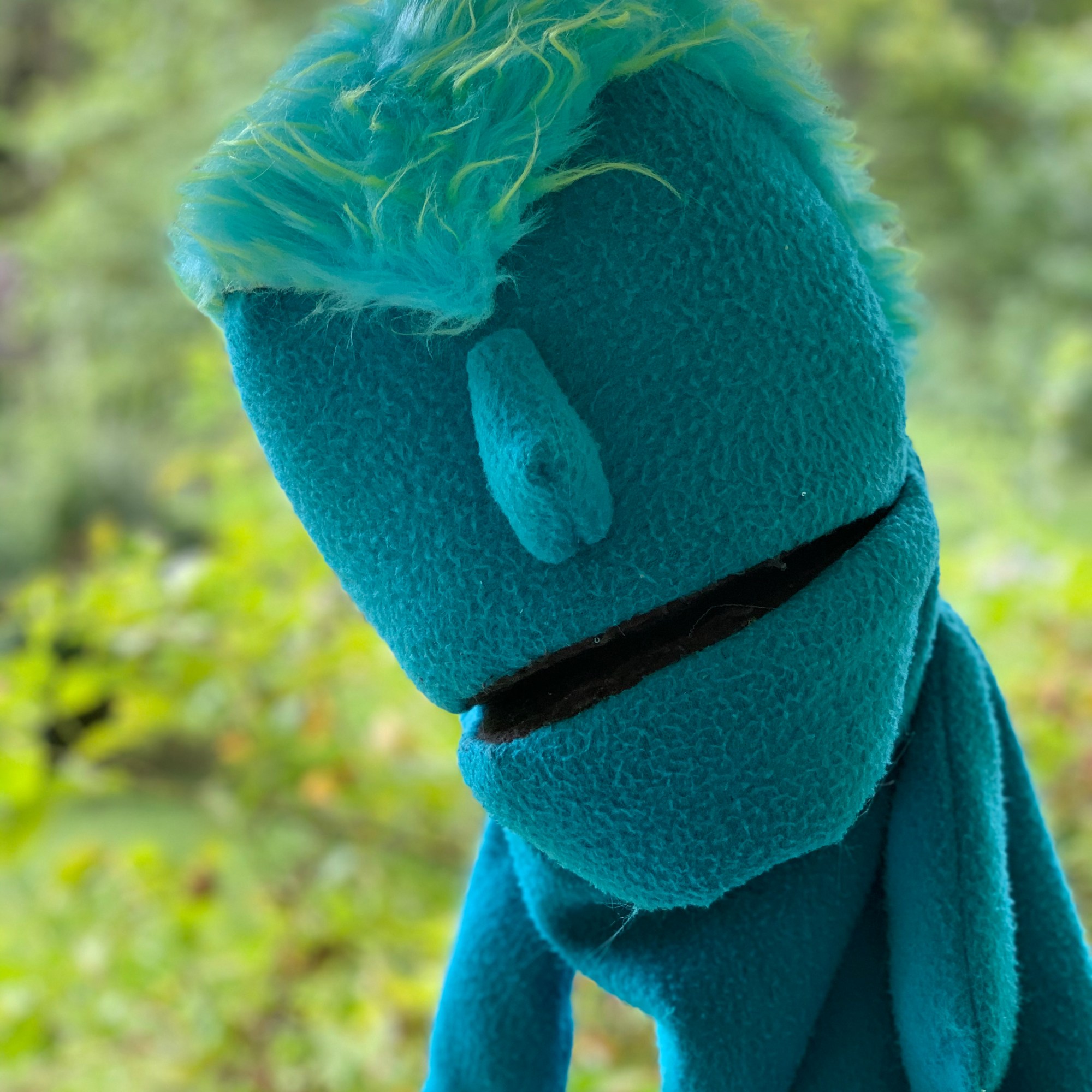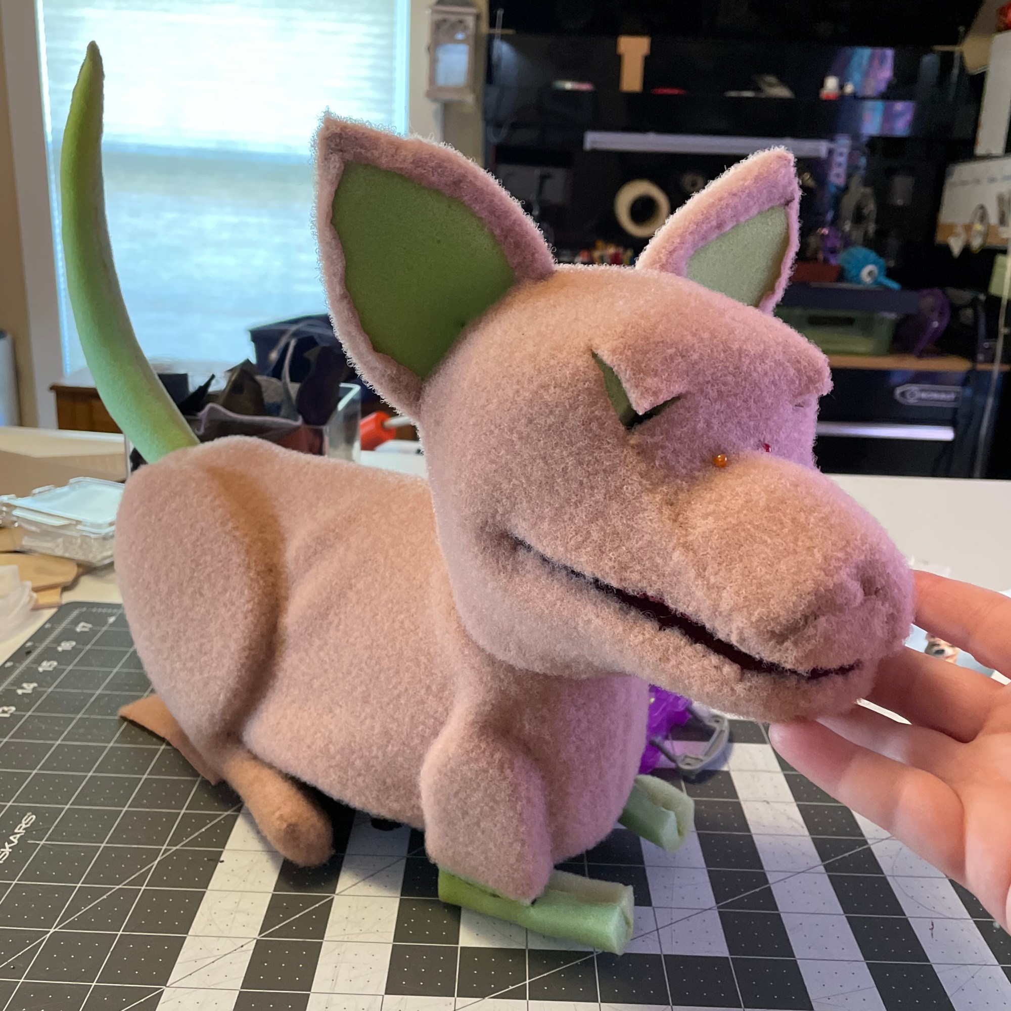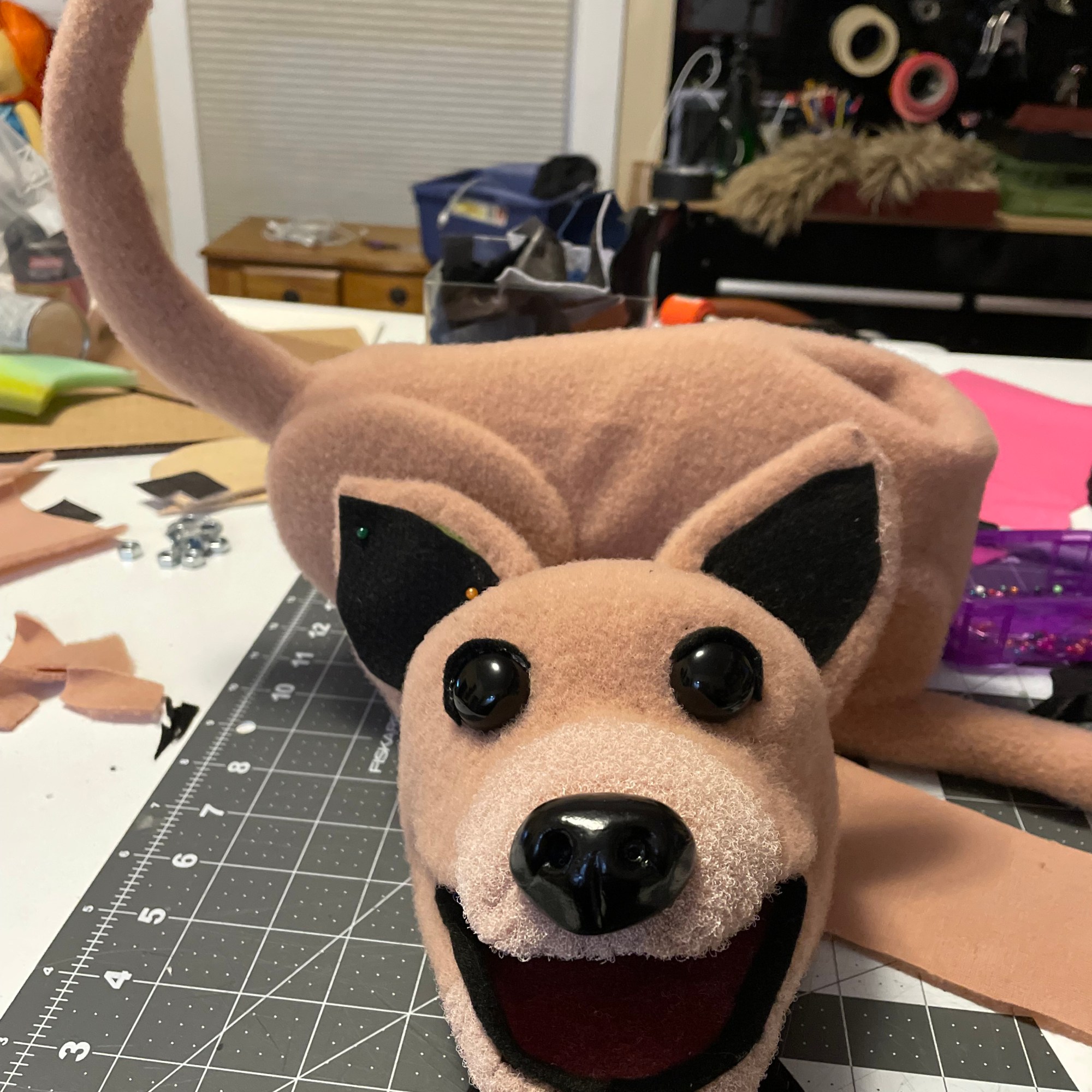 Scraps got his start at the Snip Stitch Focus Workshop at the Atlanta Center for Puppetry Arts! Needing a sidekick/partner in crime, Marzipan came along soon thereafter. They can be seen on Instagram (@shellmakespuppets) in their Dog Days stories.