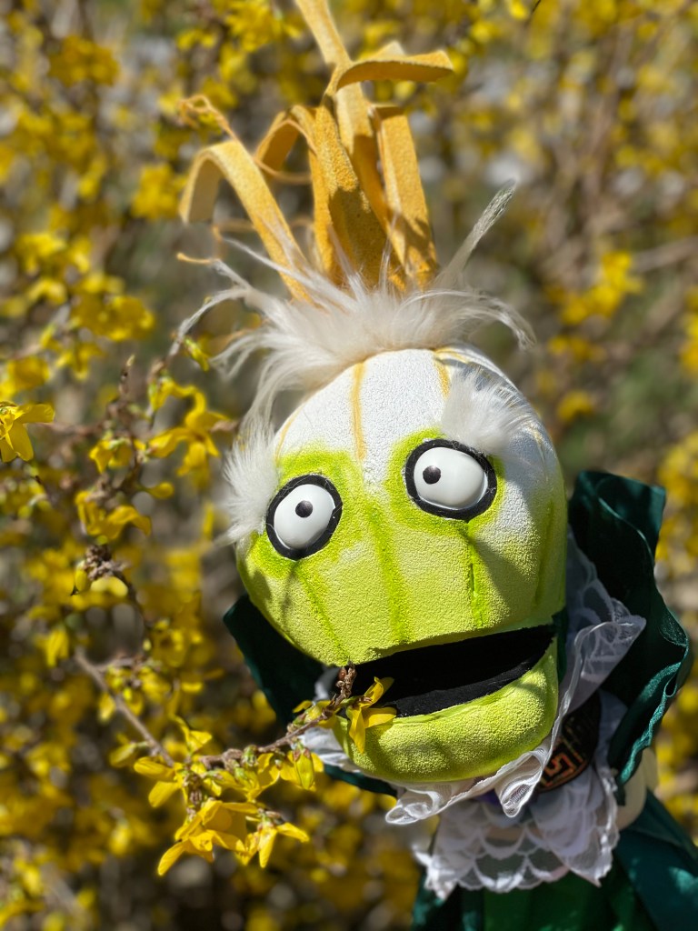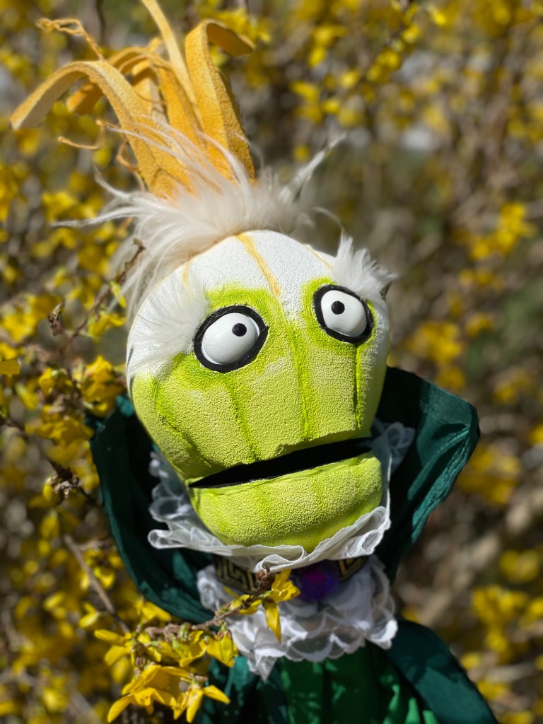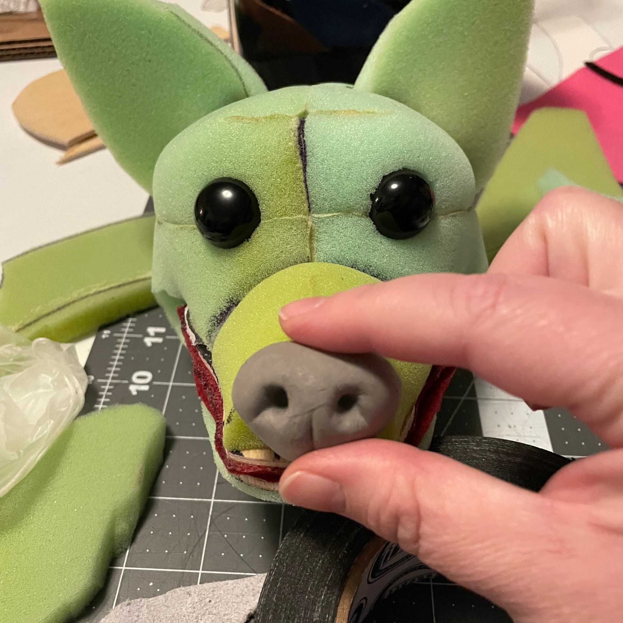 Scraps got his start at the Snip Stitch Focus Workshop at the Atlanta Center for Puppetry Arts! Needing a sidekick/partner in crime, Marzipan came along soon thereafter. They can be seen on Instagram (@shellmakespuppets) in their Dog Days stories.