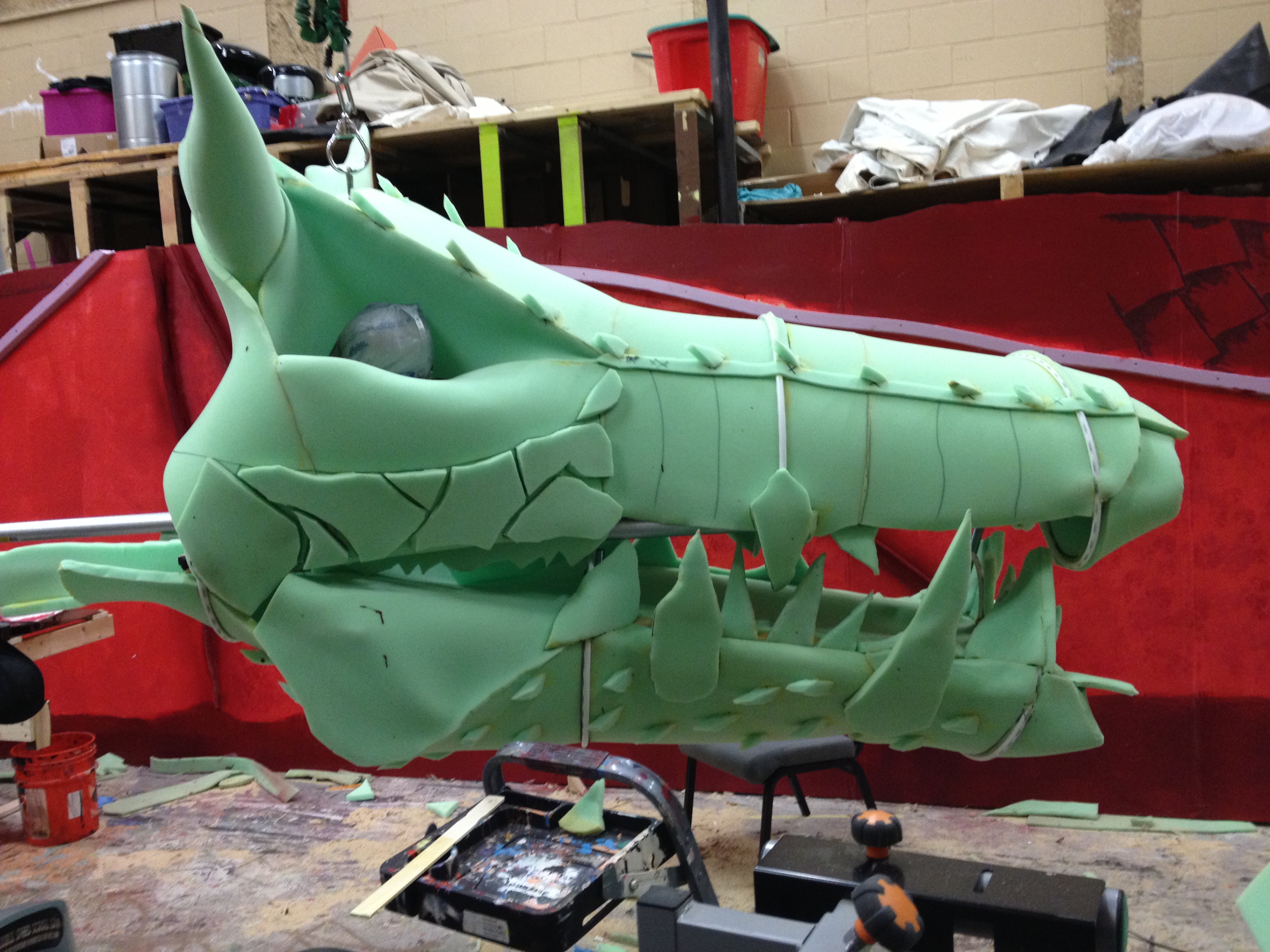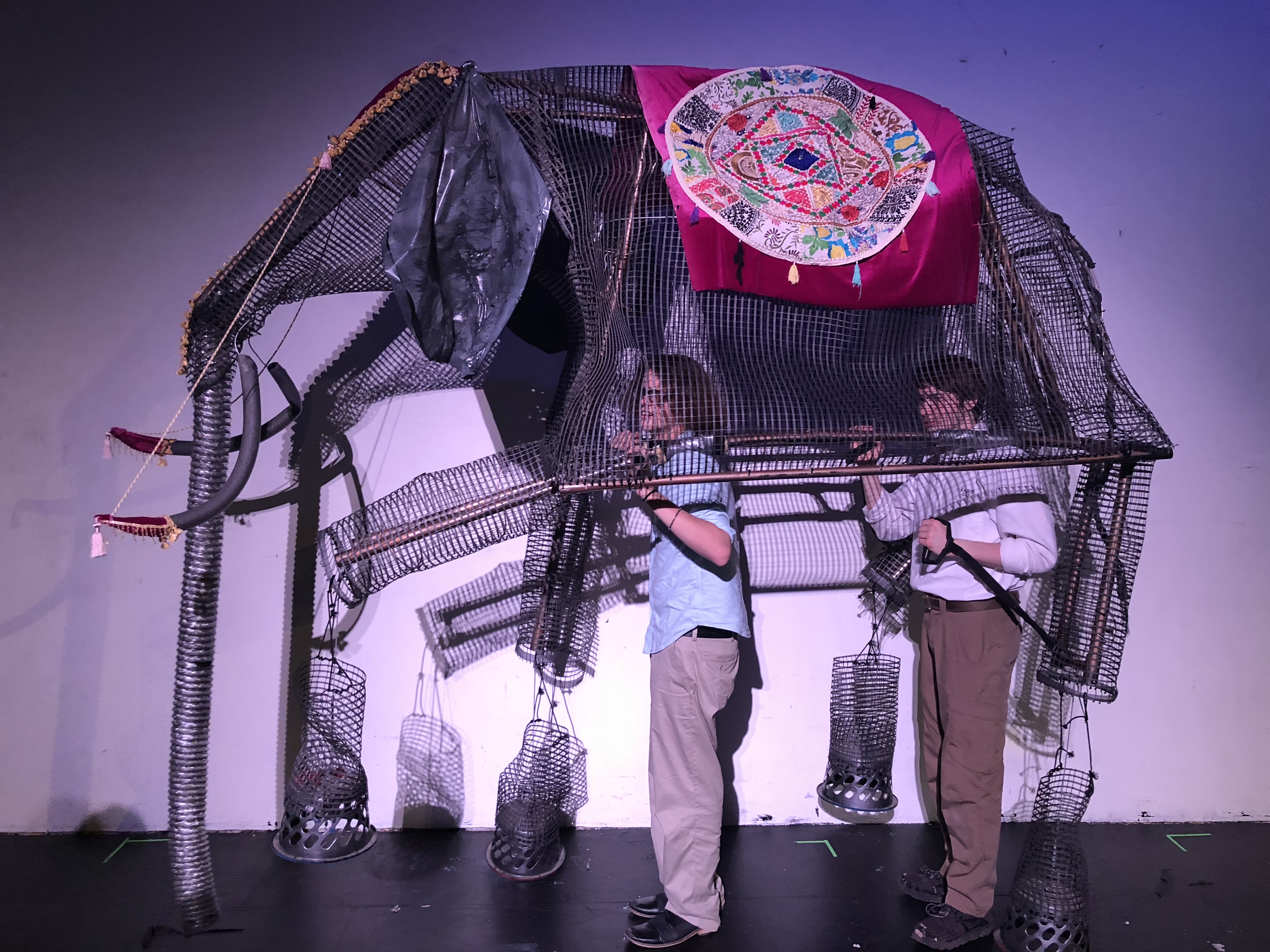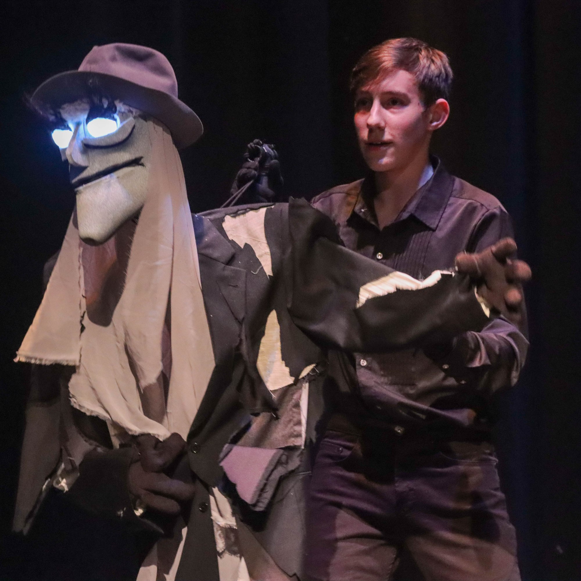 Marley’s Ghost was a mash up of foam sculpting for the head, PVC construction for the torso and puppeteer’s mechanism, and some old clothes shredded and strategically draped on the form. The mouth articulates by a string running through the jawline and attached to the puppeteer’s handle as a trigger. Christmas Carol, 2021