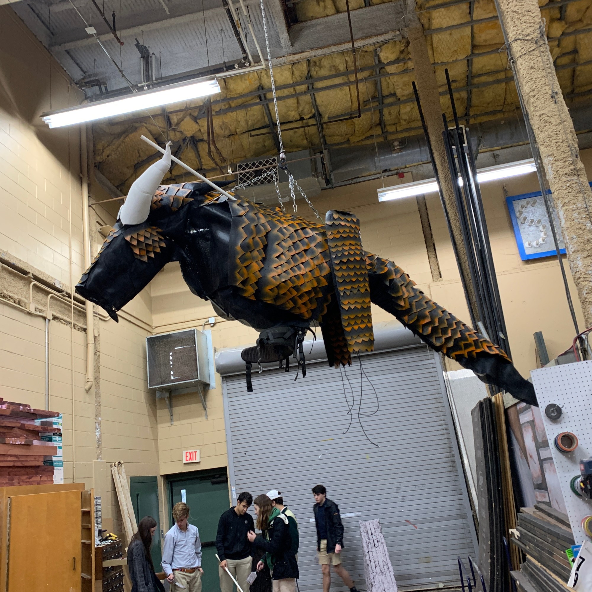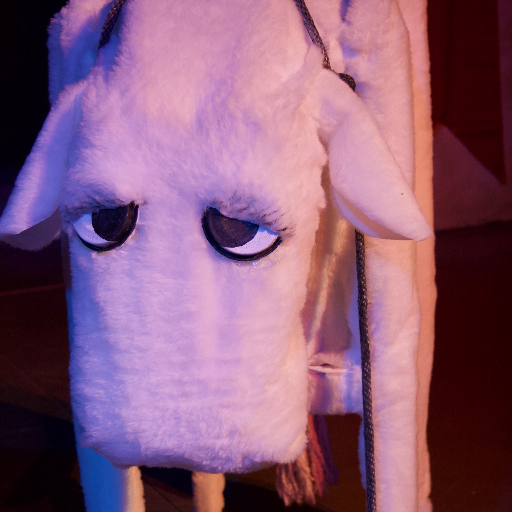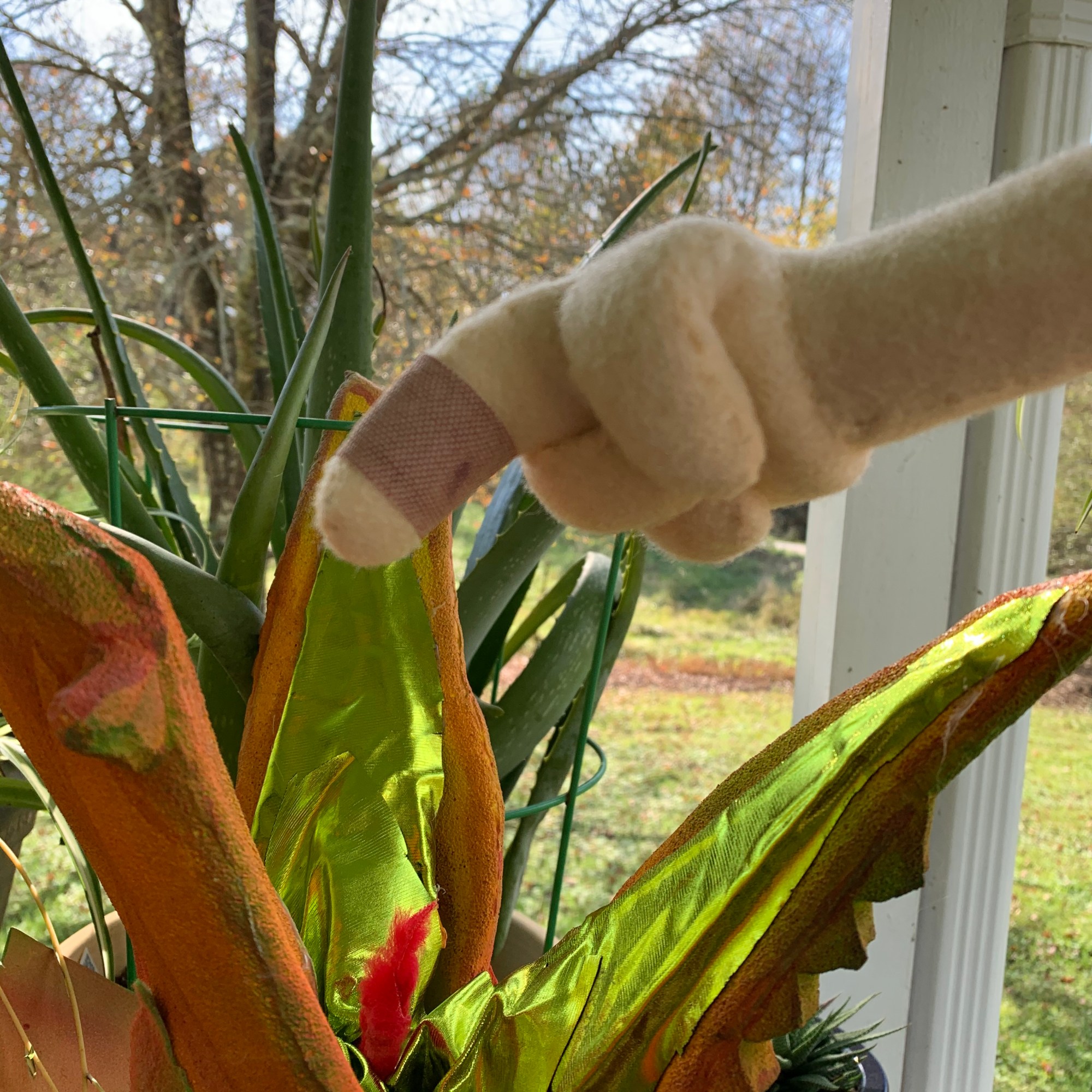 Marley’s Ghost was a mash up of foam sculpting for the head, PVC construction for the torso and puppeteer’s mechanism, and some old clothes shredded and strategically draped on the form. The mouth articulates by a string running through the jawline and attached to the puppeteer’s handle as a trigger. Christmas Carol, 2021