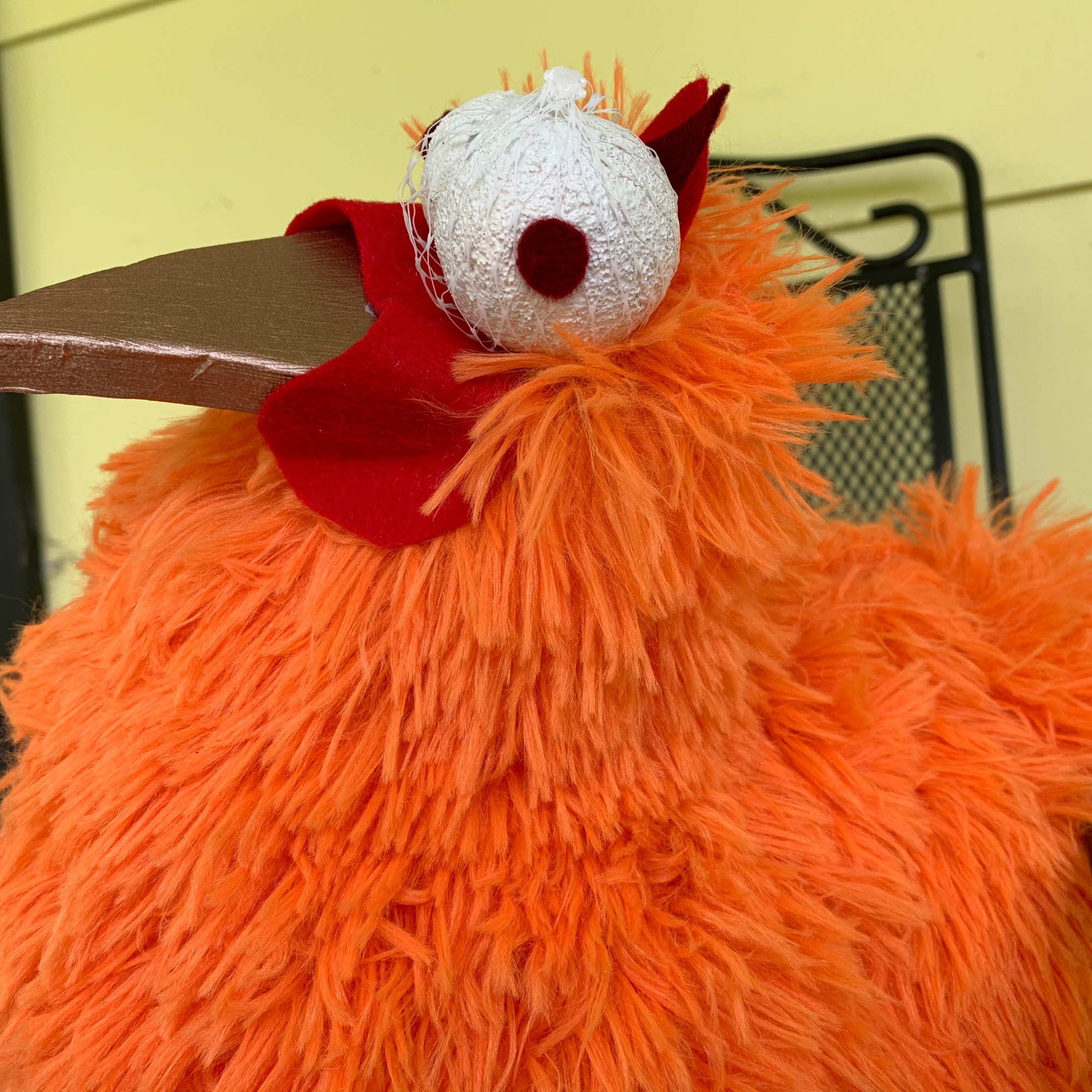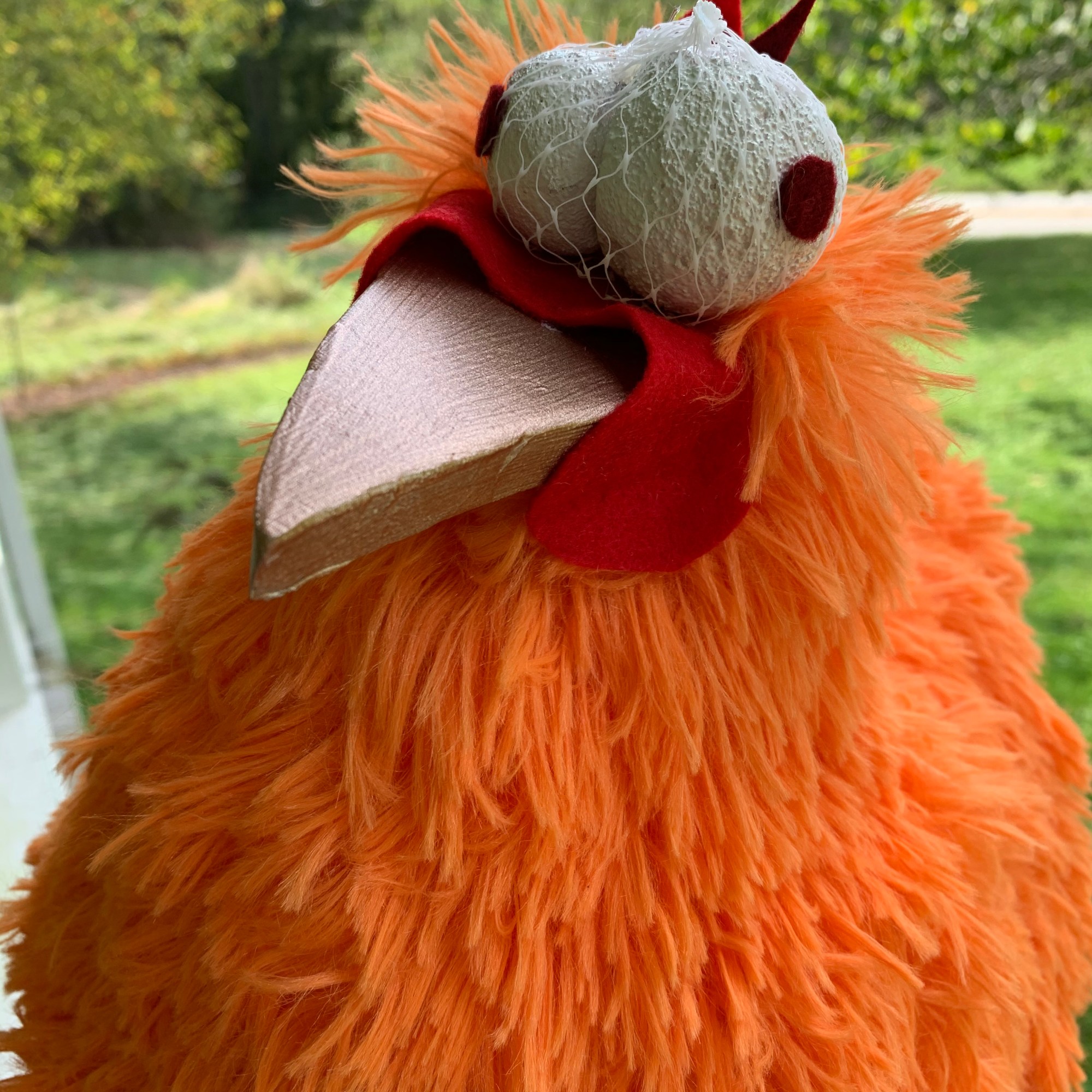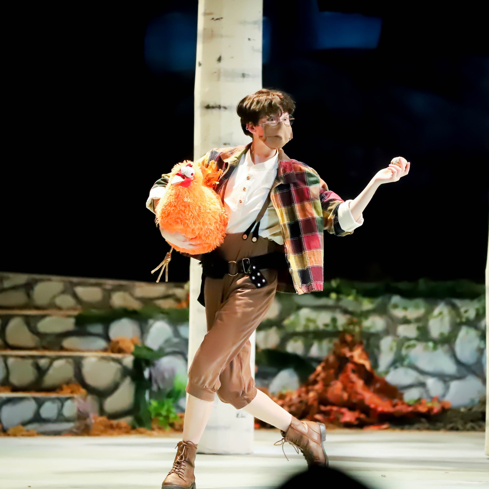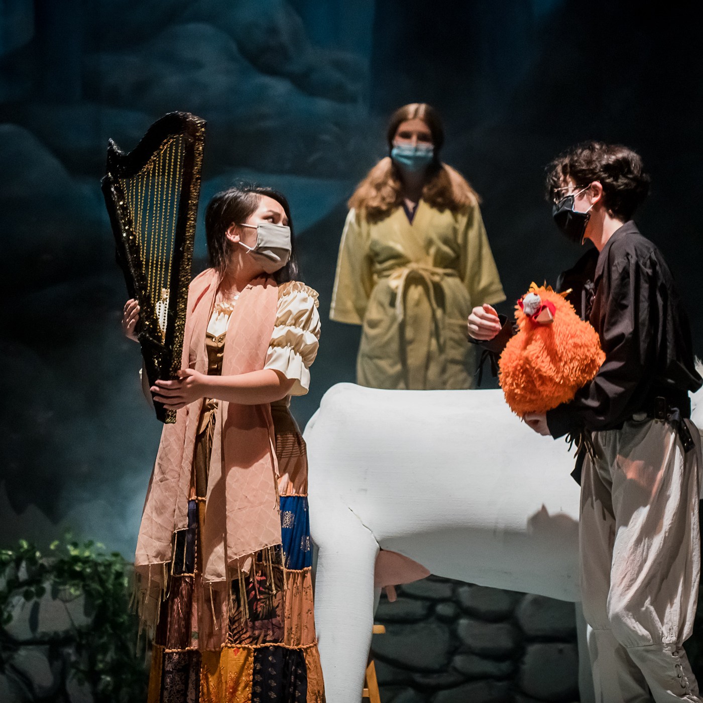 Jack’s hen that lays the golden eggs, made from a fur-covered basketball (for bounce) and strategically placed head fluff (for maximum head bobbing). Into the Woods, RGNS 2020 (masks worn due to the Pandemic)